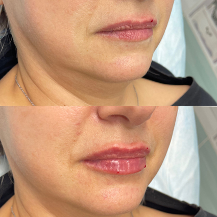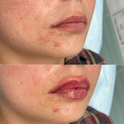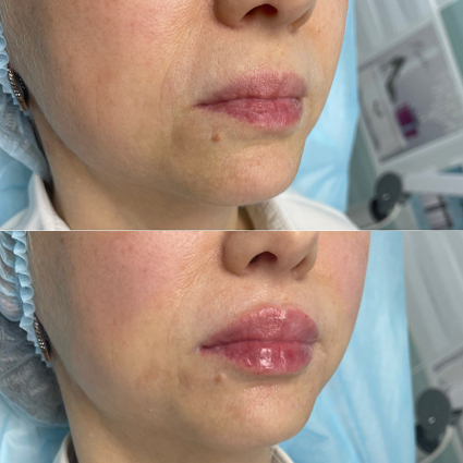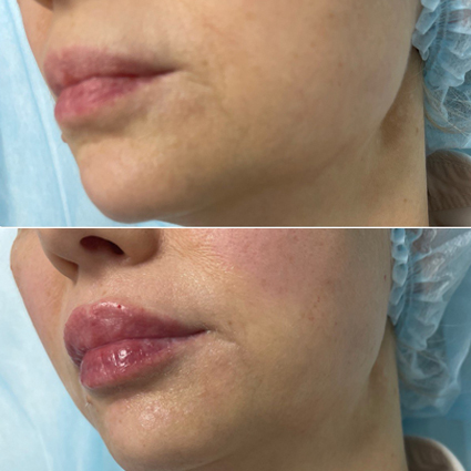 В прошлом году делала контурную пластику губ. Был запрос скорректировать асимметрию нижней губы, чуть вывернуть верхнюю губу (тем самым визуально увеличить объем), заострить уголки и сделать контур более четким. Ух, всего 1 мл, а эффект — пушка!